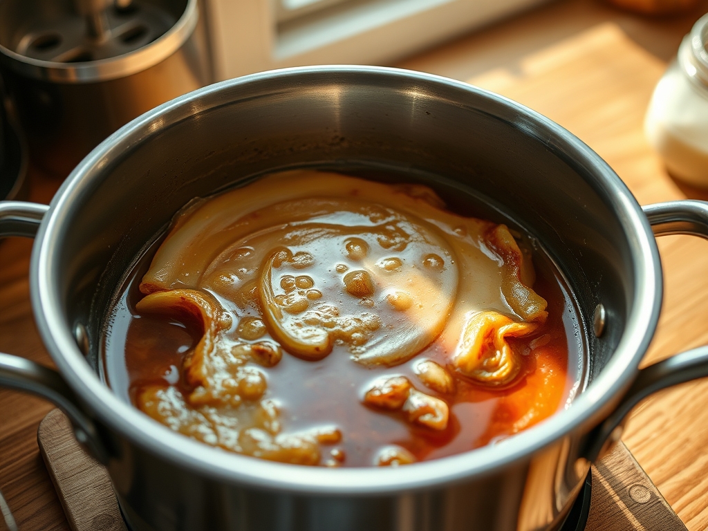 Add the honey and the filtered water. The water thins the mixture to a brushable consistency, while the honey provides the simple sugars necessary to accelerate the Maillard reaction at lower temperatures. Whisk until the mixture is perfectly translucent and free of bubbles.